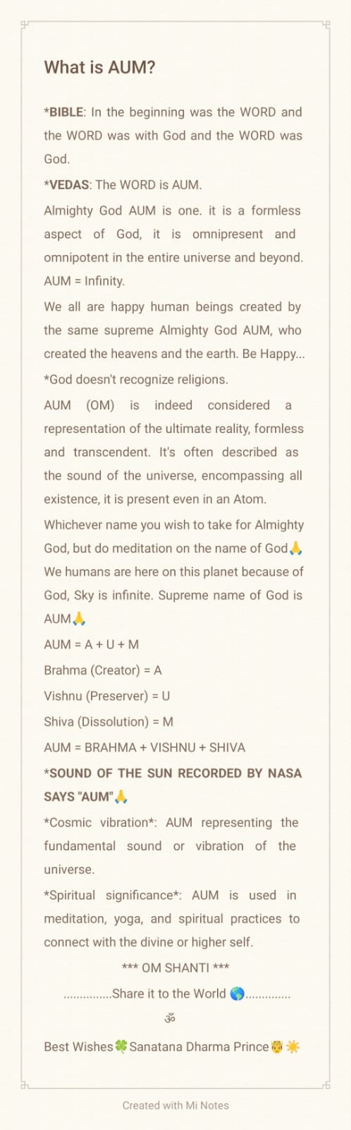 I am Happy, Finally I discovered Equation of Almighty God: AUM = Infinity
